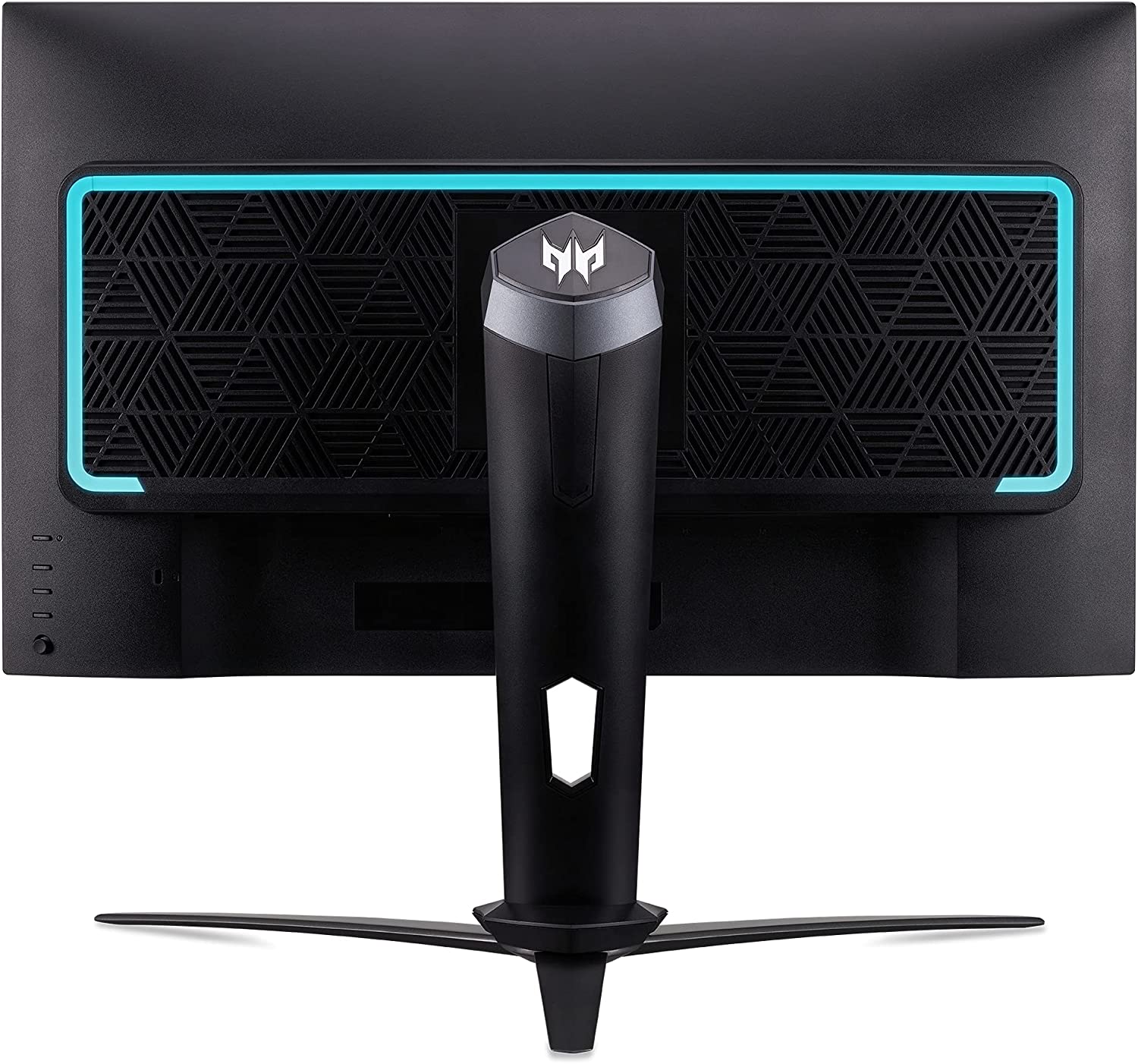 The Acer XB273U NV shares its aesthetic with the XB273U GX which is its upper-tiered 270Hz twin. The monitor has a matte black chassis that’s accented with a gunmetal base and RGB lighting. The display is bezel-free on three sides, although you still get inner borders when it’s in use.