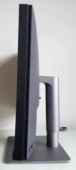 We love the metallic stand on the BenQ PD2720U which has a telescopic upright and a flat, square base which makes a good spot for your smaller things. The mechanism offers tilt, swivel, pivot, and lift, so getting a perfect view is achievable even without the help of VESA armatures. Still, you can opt for the latter, but that adds cost to an already very expensive monitor since you need to buy a separately sold VESA transfer kit from BenQ.