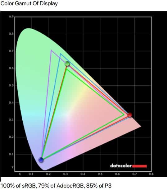 The Dell C2722DE renders 100% sRGB and around 85% DCI-P3 with some extensions for rich colors and saturation. However, its default accuracy left something to be desired since the dE average sat at 3.13 using the default setup. The screen looks bluish-green when viewing white backgrounds, so some calibration is in order.