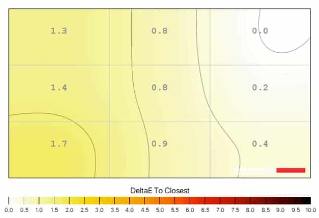 Tweaking the Dell C2722DE manually can lower the dE average to around 1.45 which is great for daily use. You can also use a colorimeter to squeeze more performance out and to lower its dE average to an excellent 0.76. It’s not factory-calibrated to a similar degree with the UltraSharp models, but results like this vary between review units.