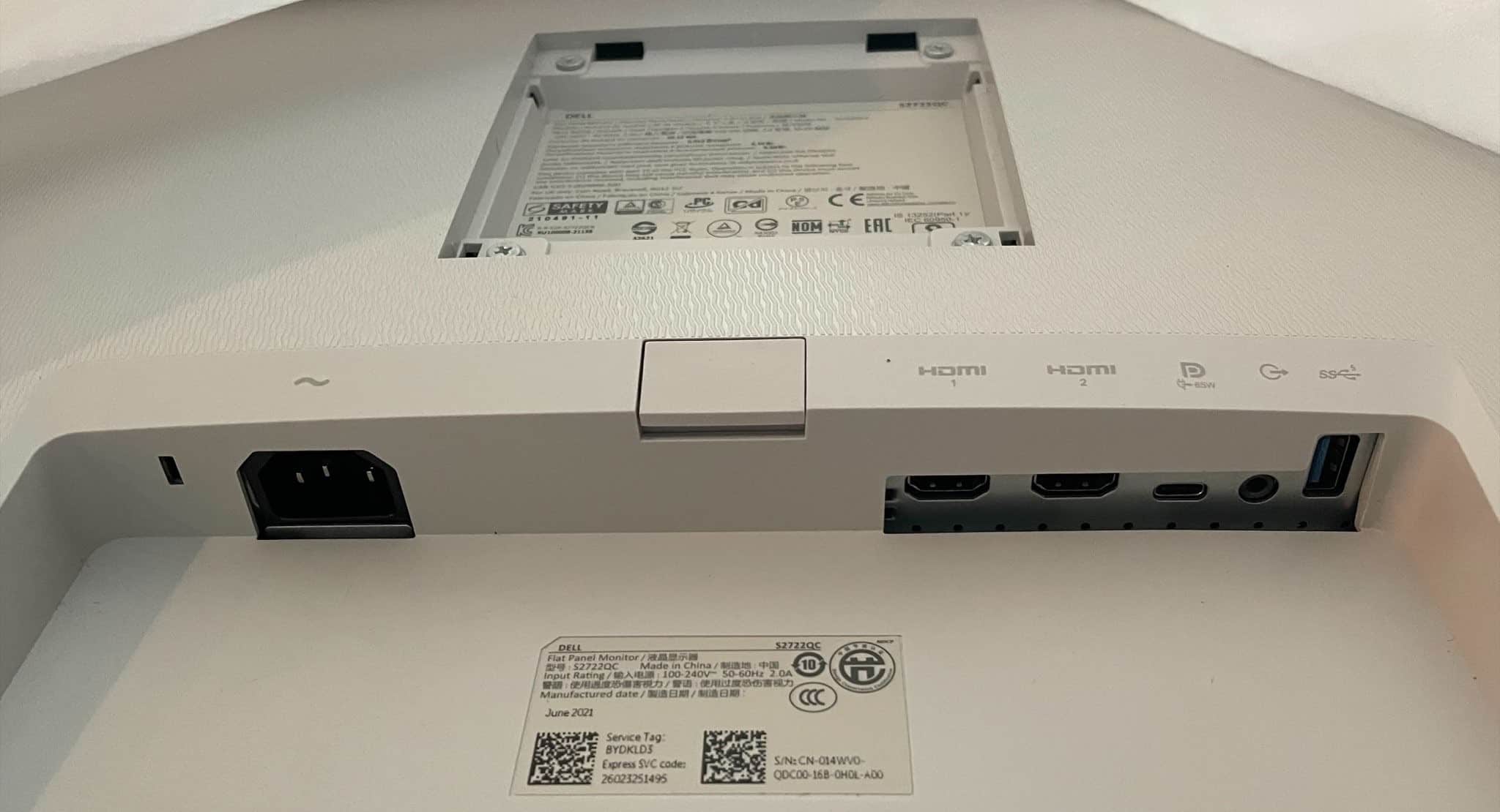 The Dell S2722QC has plenty of options in the connectivity department, starting with its DisplayPort 1.4 slot and two HDMI 2.0 ports for video inputs. You can also use its USB-C slot with DP Alt Mode and 65 watts of charging power for single cable operation with USB-C laptops. However, 65 watts sometimes isn’t powerful enough to charge a high-spec device while it’s crunching the numbers.