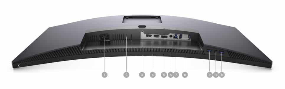 Another excellent characteristic of the Dell S3220DGF is its well-equipped I/O layout which includes everything you will need. The video inputs include dual HDMI 2.0 ports and a DisplayPort 1.4 connector which you have to use if you want to run the screen at 165Hz. There are two 3.5mm jacks for audio passthrough and a total of five USB 3.0 receptacles on the monitor as well.
