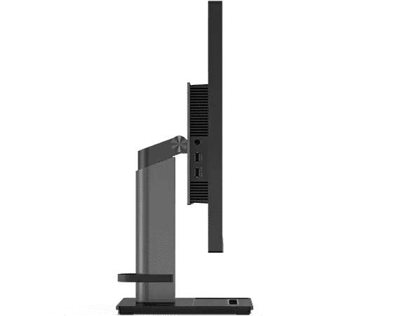 The stand included with the Lenovo ThinkVision Creator Extreme has a fully adjustable stand for your convenience. You can tilt, swivel, pivot, and adjust the height of the display so it is easy to get a comfortable view. The well-built part has a square and flat base with a slit accented with red for your phones.